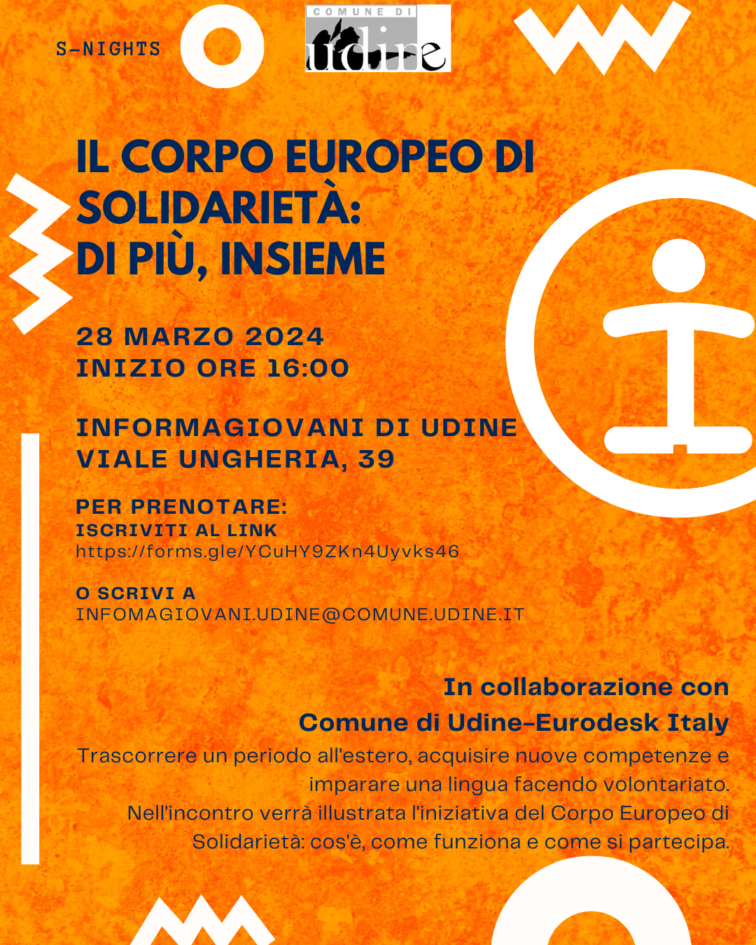 IL CORPO EUROPEO DI SOLIDARIETA' - di Più Insieme, incontro sulla mobilità europea in collaborazione con il Servizio EURODESK del Comune di Udine